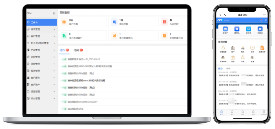 移动办公适配不足:业务人员频繁外出对接客户、行业展会,需实时查看客户档案、调取过往报价、申报新客户等,但原有平台无移动端,导致需求响应延迟,还易造成数据遗漏。