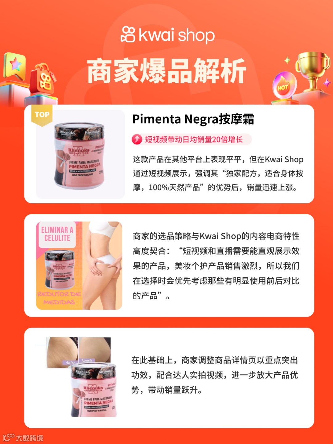 正是这种可以通过短视频购买、广泛覆盖受众以及精准流量匹配的内容电商优势,让Kwai Shop在众多平台中脱颖而出,成为他们销售的主力平台。