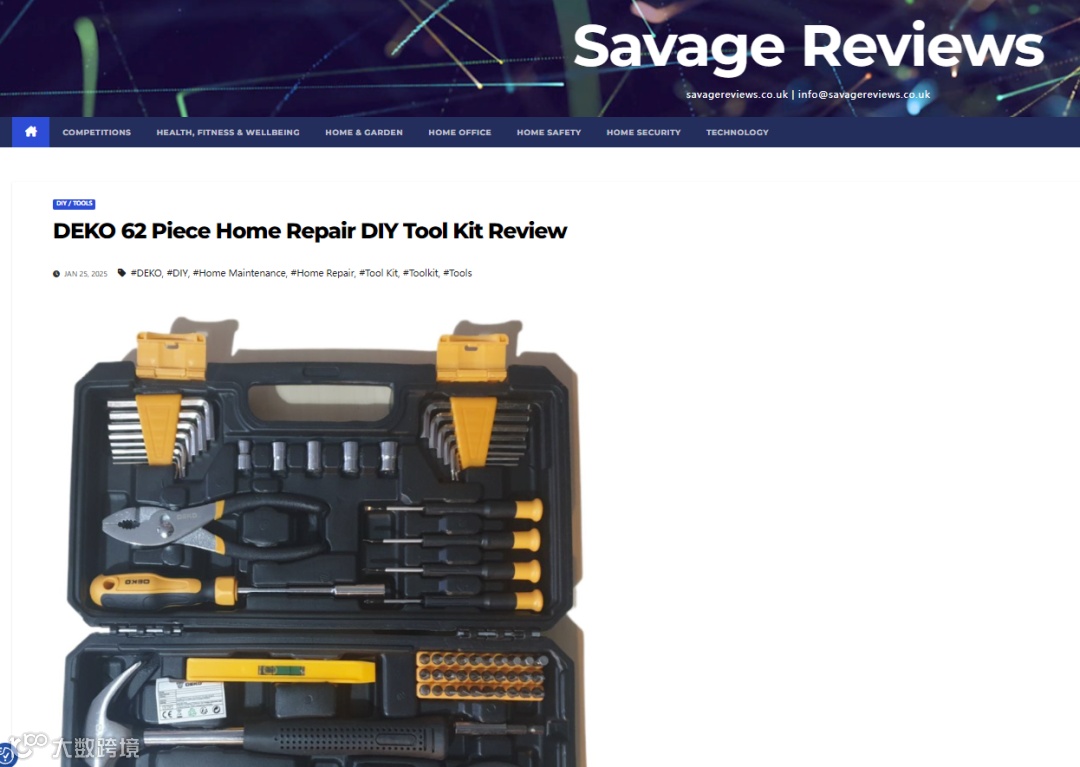 2025年1月聚焦家居产品的评论网站Savage Reviews推出deko 62件工具包的测评文章。尽管稿件内容较为简短,但要素齐全,为寻求购买参考的意向消费者提供了极具价值的内容。
