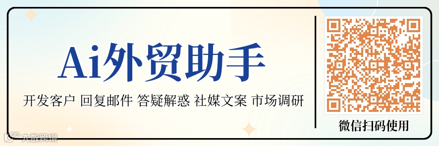 Ai外贸助手支持开发外贸客户、答疑解惑、邮件回复、多语言互译、关键词挖掘、标题撰写、开发信编写、社媒文案创作及市场调研等多项功能,助力外贸业务高效开展[k]。
