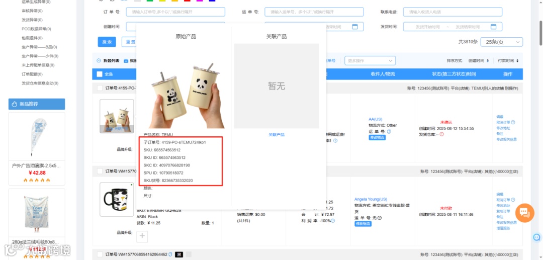 针对先出单后设计场景中相同产品多规格订单关联效率低的问题,系统现可通过SPUID自动识别相同产品,用户只需确认颜色及尺码信息即可快速完成关联[k]。