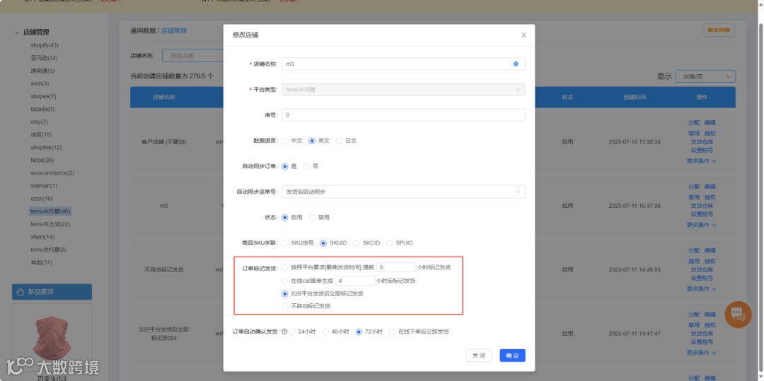 新增TEMU平台专属发货时间设置功能,提供四种策略供选择(仅可生效一种):