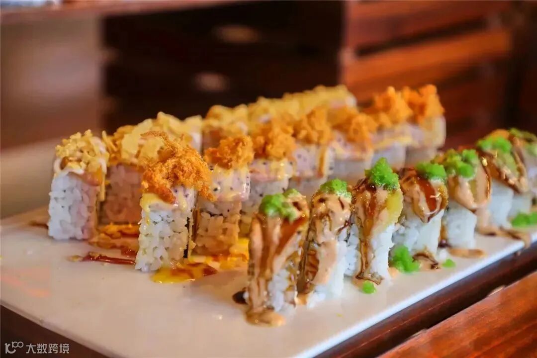 日式风情满满的寿司、刺身档仿佛穿越到了日本,各种灯笼、小彩伞别有一番风味!