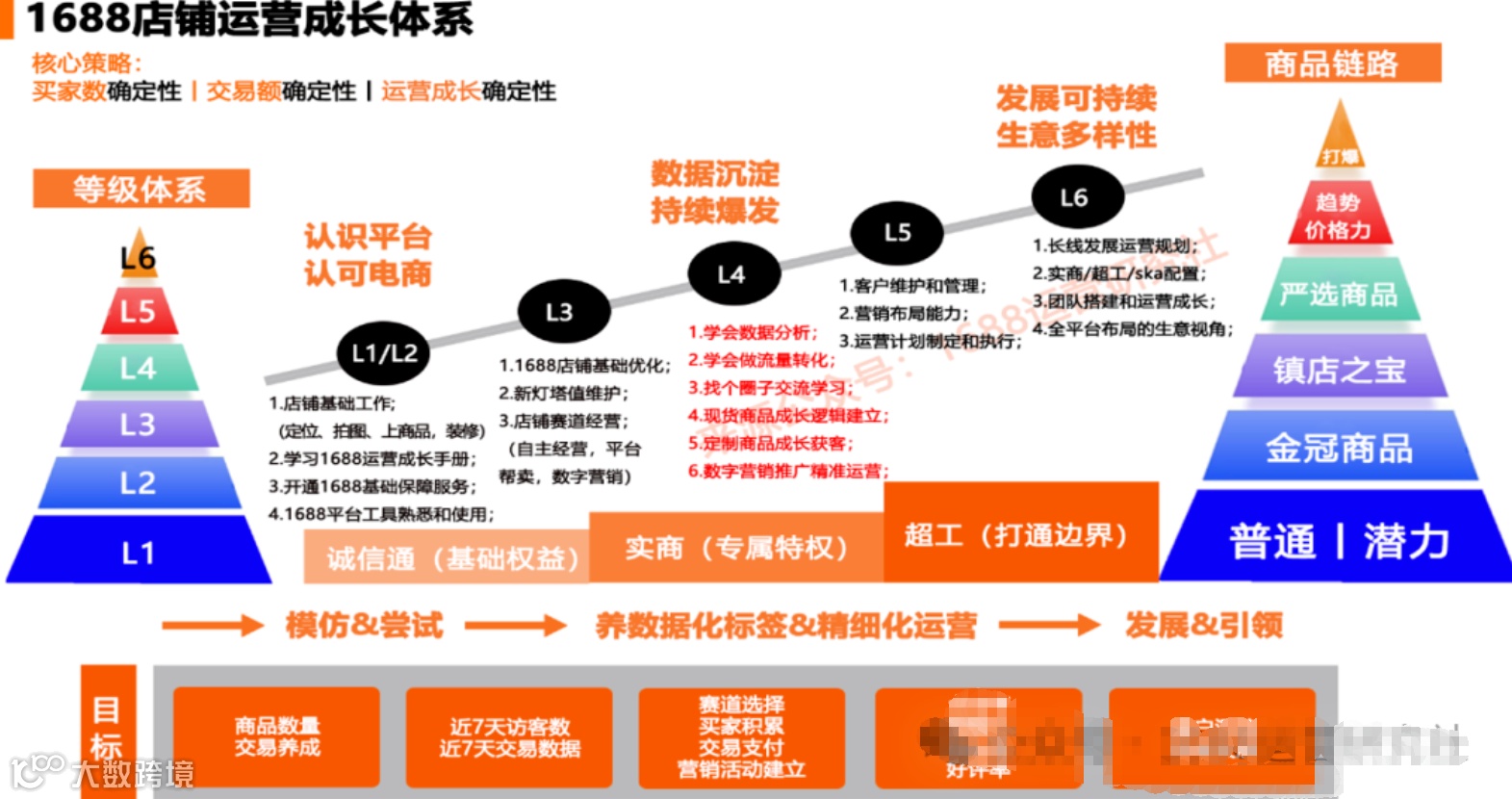 8.在1688平台上,确保店铺基础指标达标是运营过程中必须完成的关键步骤,这对于店铺的长期健康发展至关重要。这些基础指标包括店铺等级L3,交易勋章3A,店铺层级当前层级前100,新灯塔4.5,产品数量30+,金冠商品在40%等。只有当这些基础指标达到基础标准时,店铺才能在搜索排名中占据有利位置,吸引更多流量,进而实现销售增长和数据影响力的提升。
