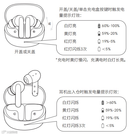 *充电盒打开盖子,耳机自动开机,若未自动开机,请充电后重新尝试。