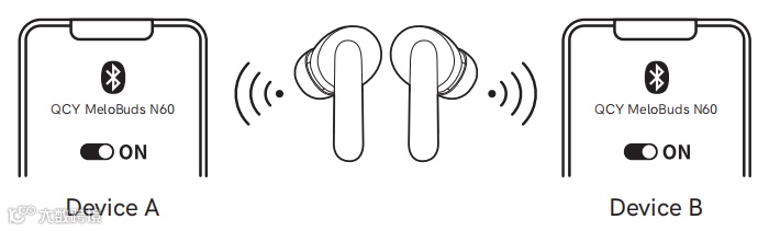 2.设备B打开蓝牙并点击耳机配对名QCY MeloBuds N60 ,完成配对。