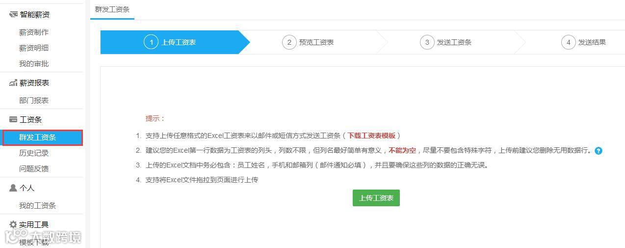工资条:简单三步,一键群发工资条,银行级的安全保障。