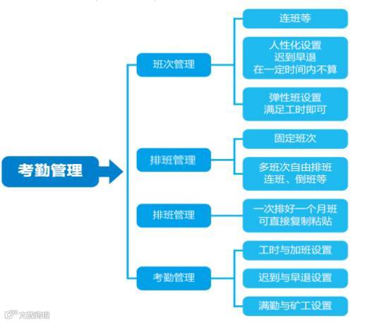 1)班次管理:企业管理层和部分员工需要弹性班制设置,满足员工加班、调休合理化安排。
