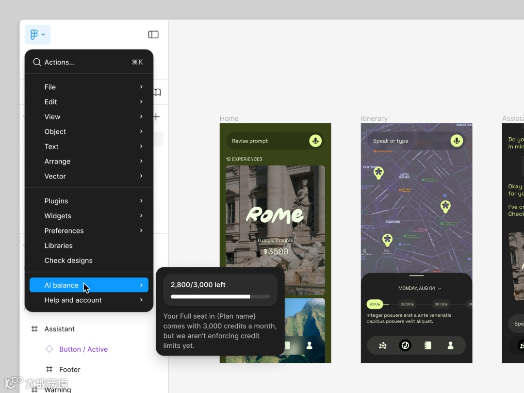 从本周开始,我们也可以查看Figma账号 AI 剩余积分了。