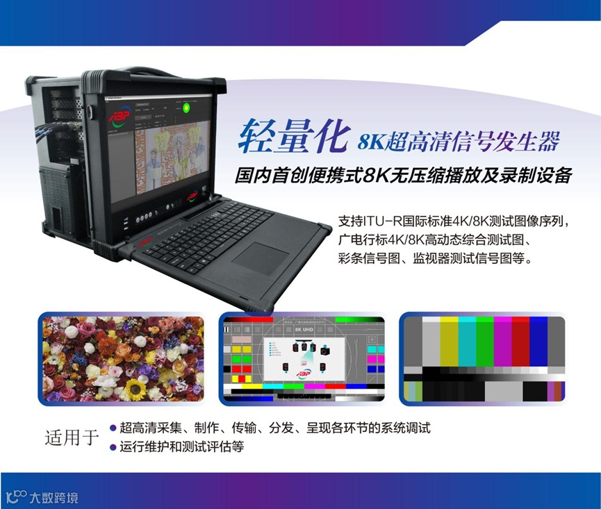轻量化8K超高清信号发生器基于轻量化8K超高清无损采集播放一体机,结合自主研发的专业测试图像序列和符合行业标准的测试信号图,形成一套完整的超高清信号发生系统。