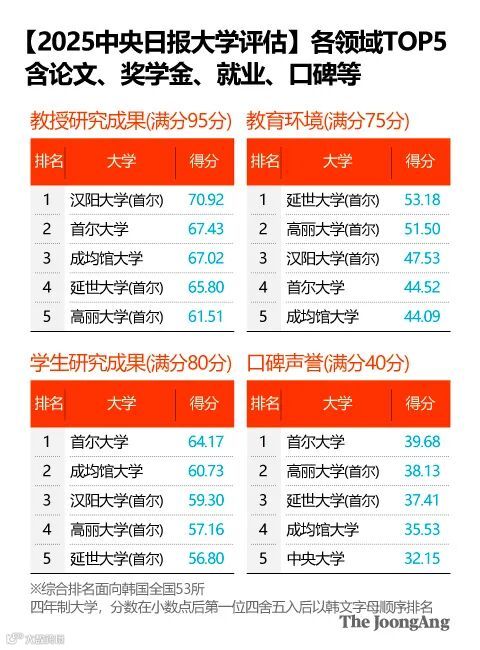 近日,韩国《中央日报》正式发布了2025年大学综合评估排名,本次评估覆盖全国53所四年制大学,为广大留学申请者提供了详细的院校排名和评估数据。无论你是准备申请韩国的本科还是硕博,了解这些排名将帮助你做出更明智的选择。