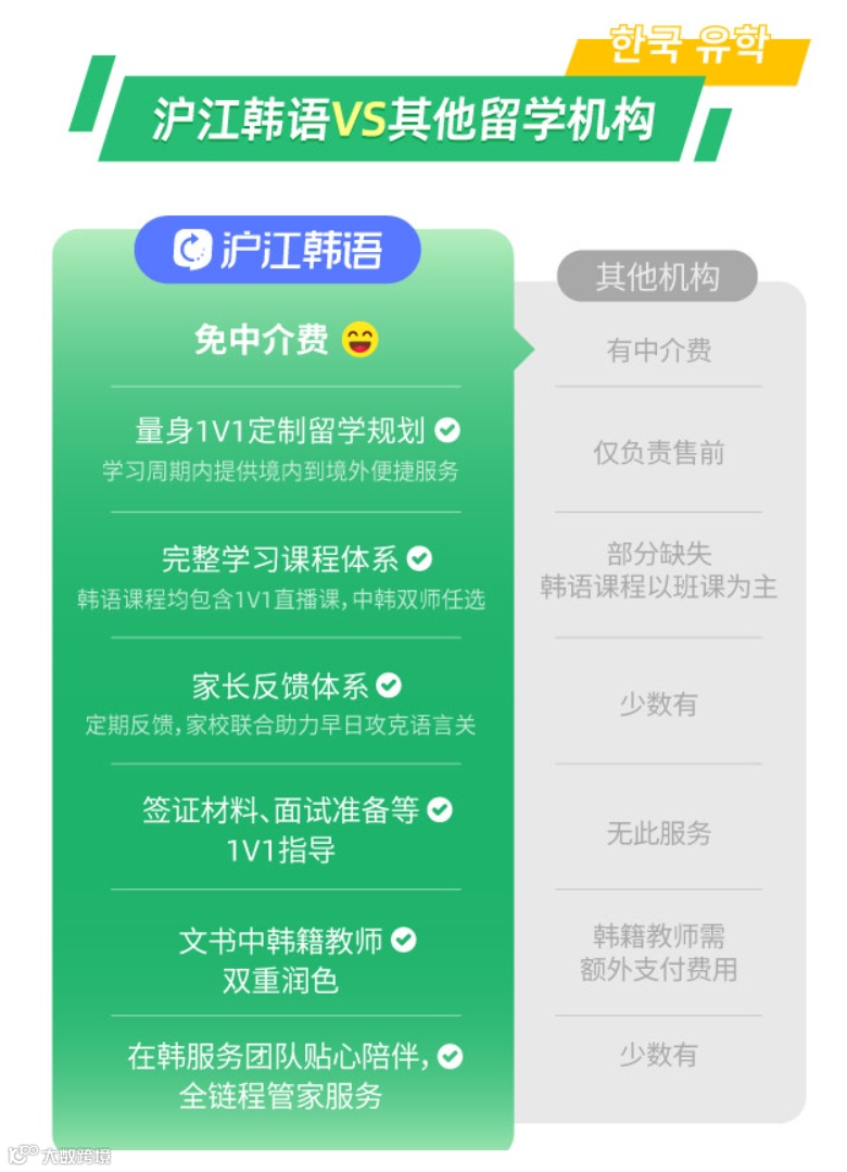 沪江韩语留学指导君在线待命,提供免费一对一咨询服务,量身定制留学方案,帮你扫清所有障碍✨。