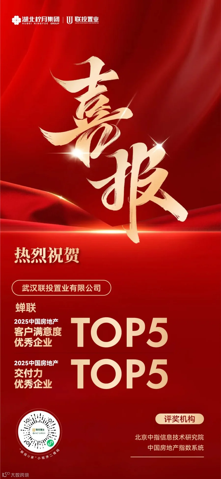 12月11日,2025中国房地产大数据年会暨2026中国房地产市场趋势报告会在北京隆重举行。联投置业凭借多年沉淀的硬实力和好服务,荣登“2025中国房地产客户满意度服务优秀企业TOP5”、“2025中国房地产交付力优秀企业TOP5”,实现2024-2025连续两年双TOP5荣耀蝉联。