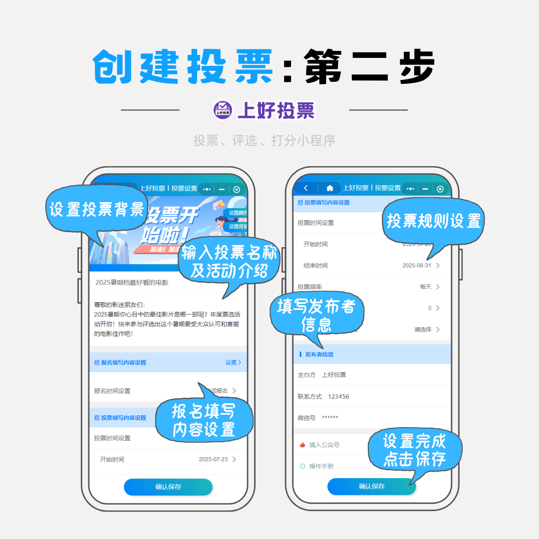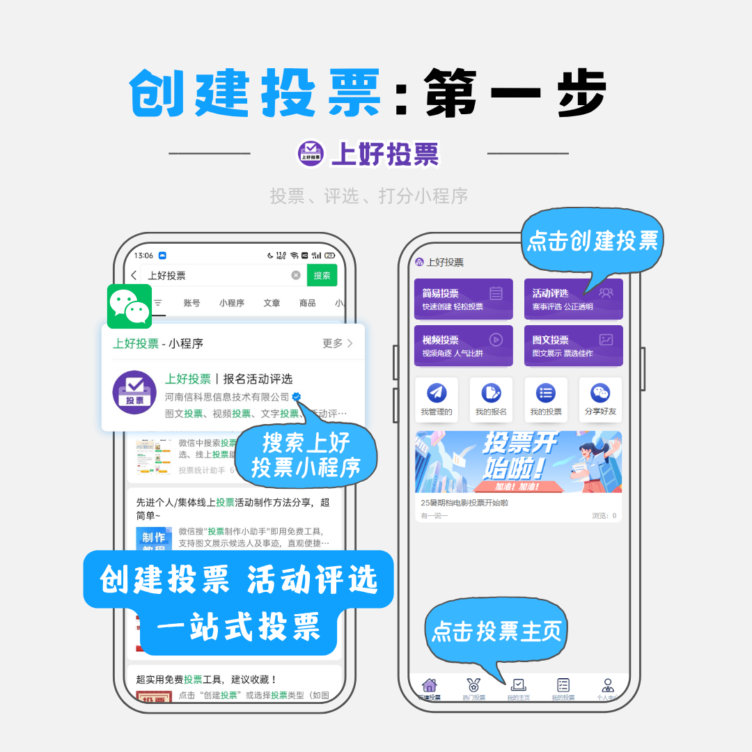 使用微信小程序“上好投票”,可以将报名、投票和统计管理集中在一个平台上,操作简单,管理方便。