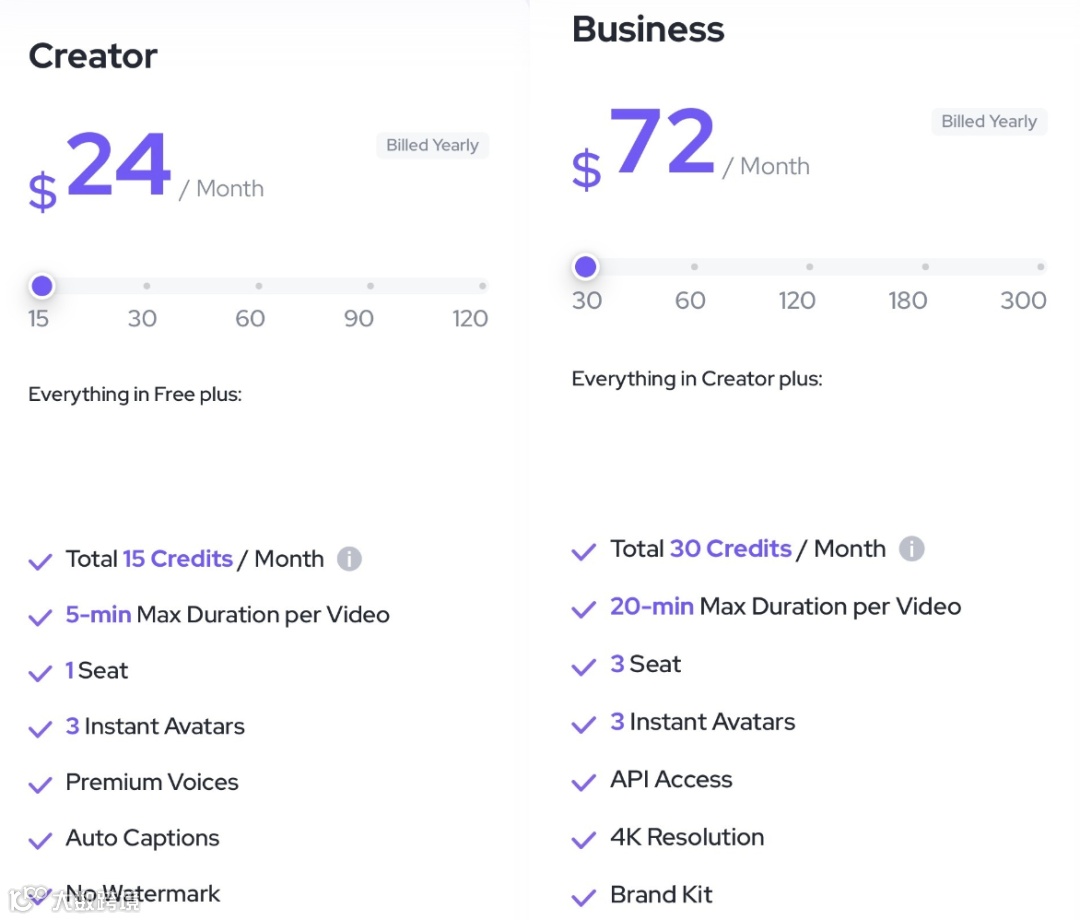 盈利模式方面,HeyGen主要依靠C端客户付费,视频生成付费模式分为“创作者(Creator)和商务(Business)”两种,最低24美元/月。也支持“声音克隆、人像精调”单独付费。未来将逐步开放API接口、团队协作和企业功能。
