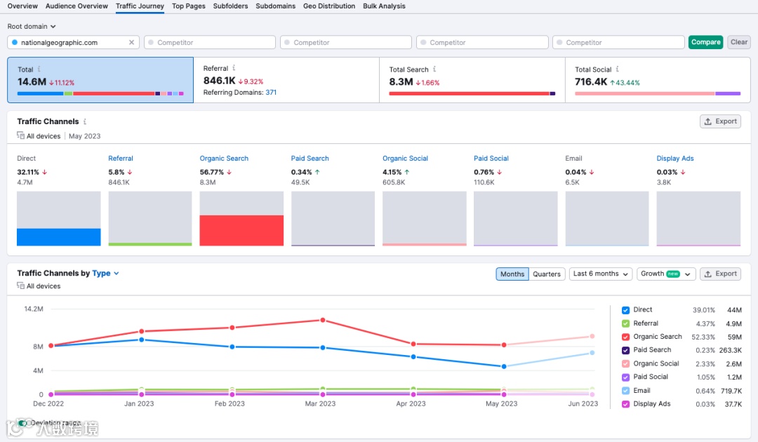 Semrush花了一年半的时间升级竞品研究。现在,您可以分析来自八个渠道的流量: