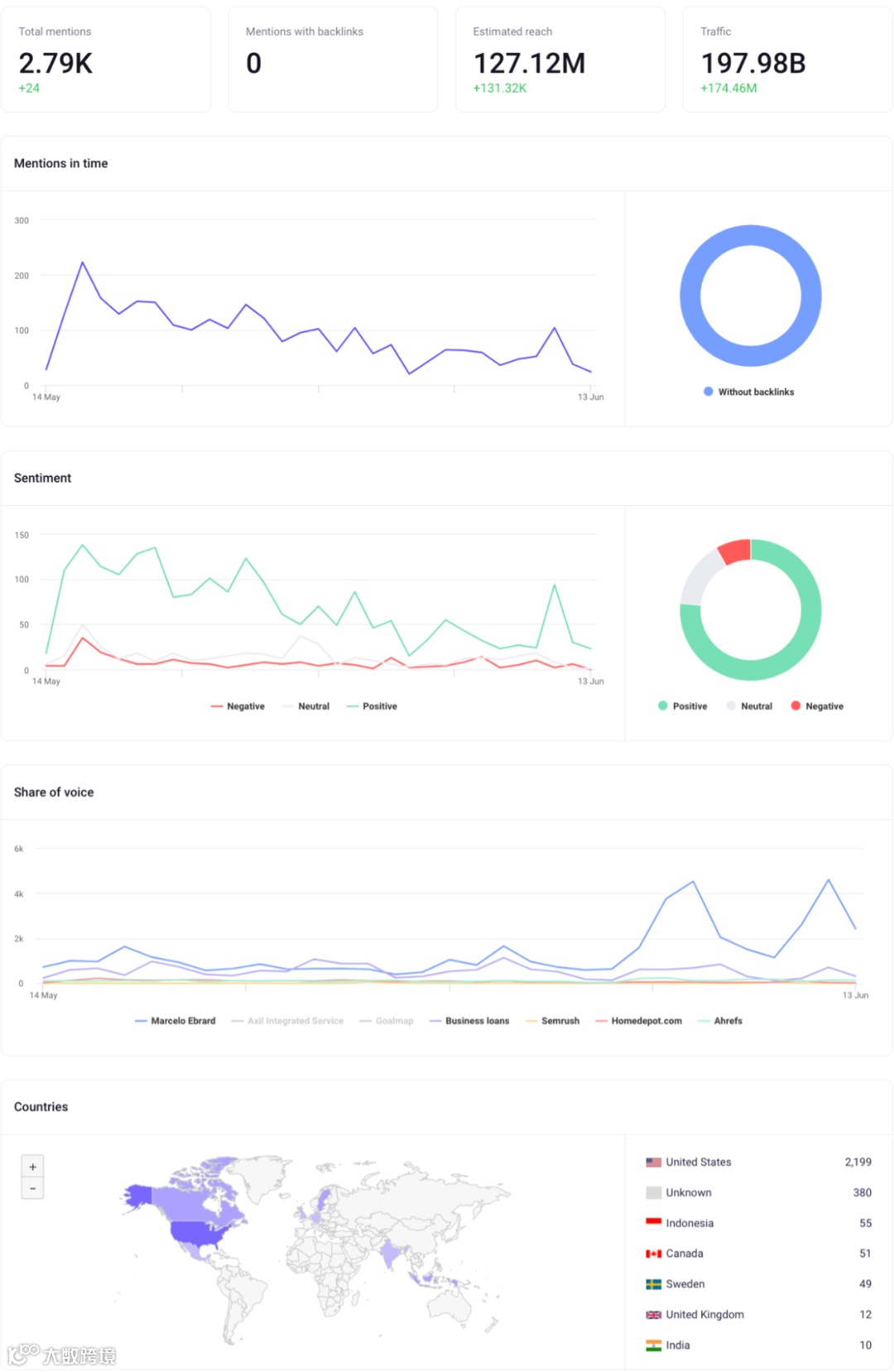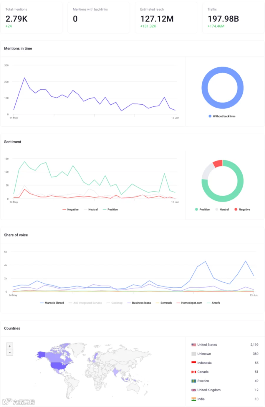 使用该工具可以跟踪自己或竞争对手的提及,包括: