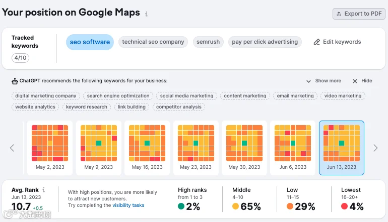 这还不是唯一的新增高级功能-我们还增强了热图功能。现在,您可以根据ChatGPT AI提供的信息,得到超级本地化的关键词建议。
