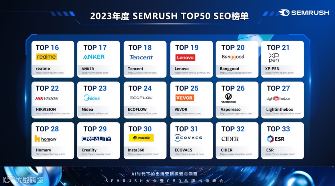 重磅发布!2023年度SEMRUSH TOP50 SEO榜单正式揭晓
