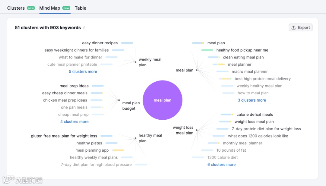 通过全新的关键词群集功能,我们增强了其洞察力。关键词群集会自动将您的列表按主题进行分组,帮助您: