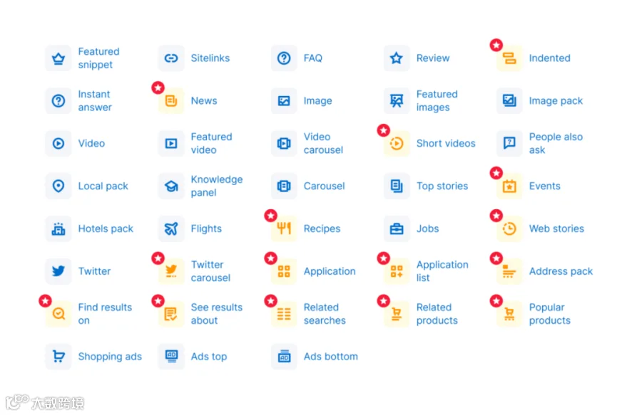 Semrush现在可以追踪令人惊叹的38个独特的SERP(搜索引擎结果页面)精选摘要,并识别出更强大的机会来提升您的品牌知名度。