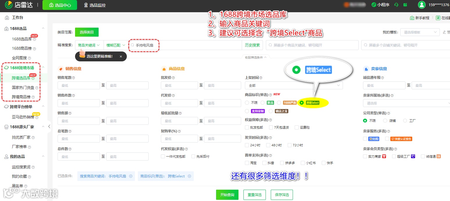 较轻和较小的商品可以降低运输成本,特别是在按重量或体积计费的情况下。通过店雷达1688跨境市场选品库,选定想要的商品,进行高级筛选,设定一些标准