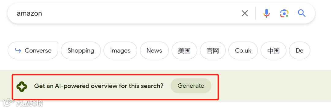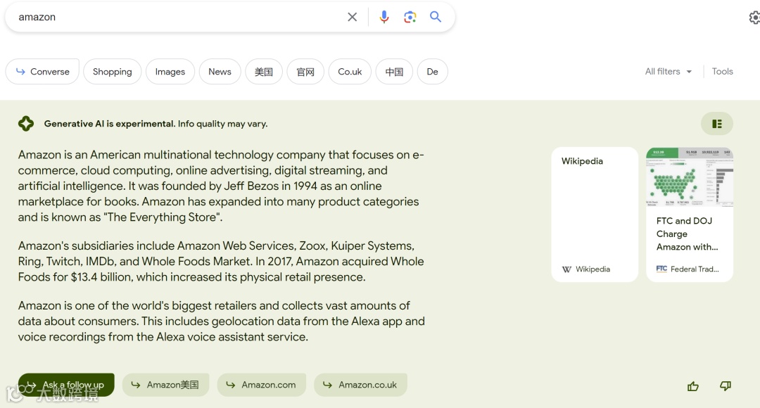 例如当我们搜索品牌类关键词 Amazon 时,并不会主动生成AI内容