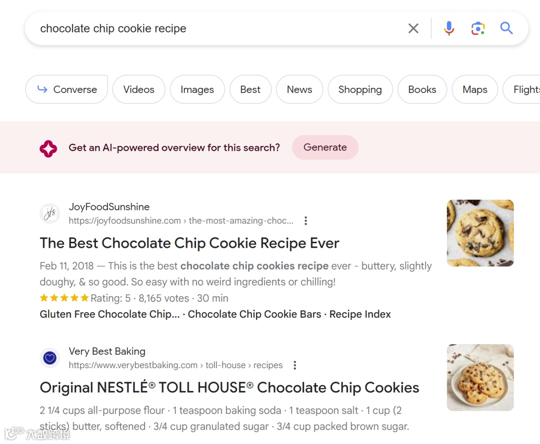 比如搜索食谱类关键词: chocolate chip cookie recipe