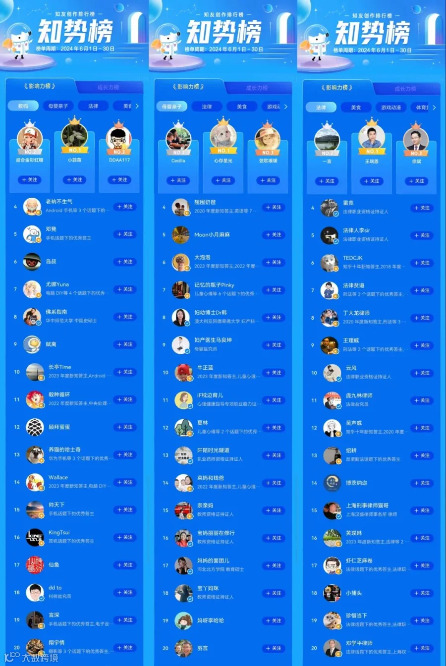 2024年6月知乎「知势榜」发布:聚焦优质内容创作者