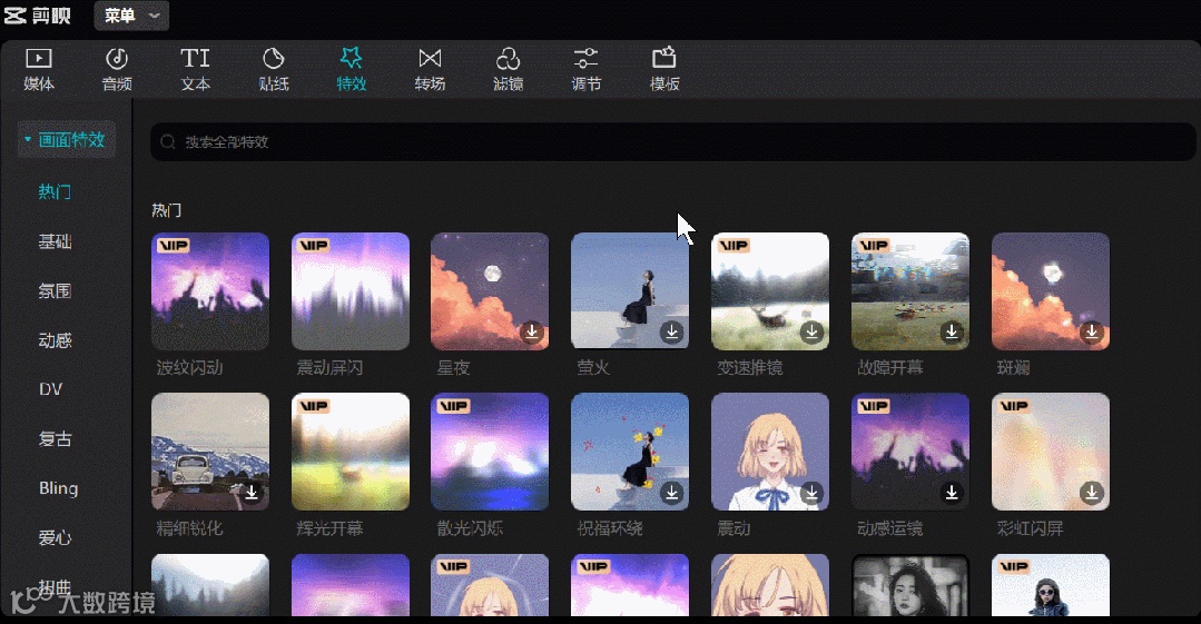 第一步:安装剪映最新专业版,可以看到有很多特效/素材等需要VIP,导出后提示需要开通会员。