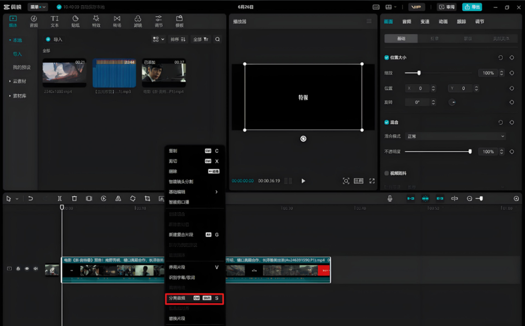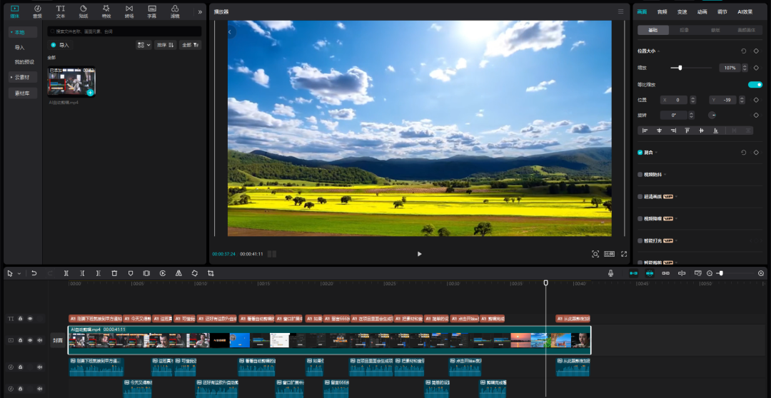 智能镜头分割、智能剪口播、识别字幕/歌词、分离音频等