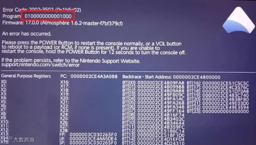 我更新了我的 emuMMC,现在 Atmosphere 崩溃并给我这个屏幕