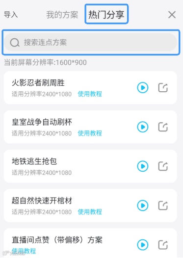 已经设置好的点击方案,可以点击分享按钮复制分享码,方便自己其他设备或者他人多次使用