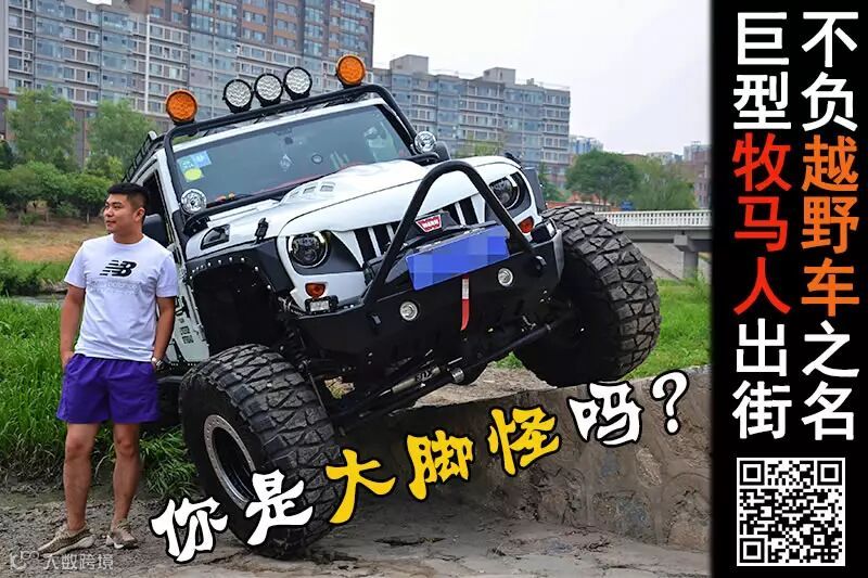 见天儿看性能瓷和外观党有些腻了?那今天咱们就来点硬货。哦不对,应该说是硬汉——牧马人,而且是超级大的那种。笔者并非越野车玩家,也一直没有涉足过这一领域的知识,因此我不清楚是否该叫它大脚怪还是什么别的名字。但你们应该能够想到了,它的体型大得不一般。起码初见它的那一瞬间,我的目光就无法挪动脚步。