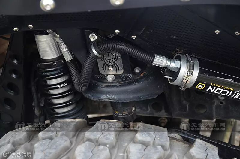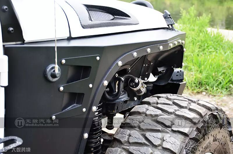 但这种吸睛并非是牺牲了某种特性而换取来的,事实上,是放大了它的越野能力后得到的。车身上有不少改装件,但几乎都是为了想要获得最大的越野能力,看上去虽然很浮夸,但绝非刻意而为之。