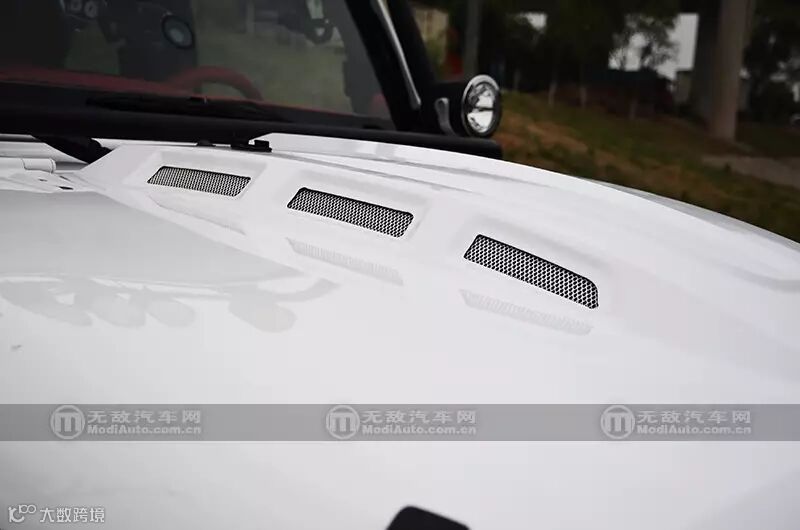 图:MARKROAD发动机盖除了外观更漂亮,机盖上的开孔也有助于在恶劣情况下为发动机散热。此外它采用玻璃纤维材质打造,重量也极具优势。