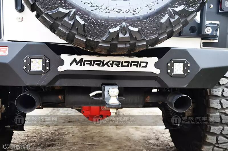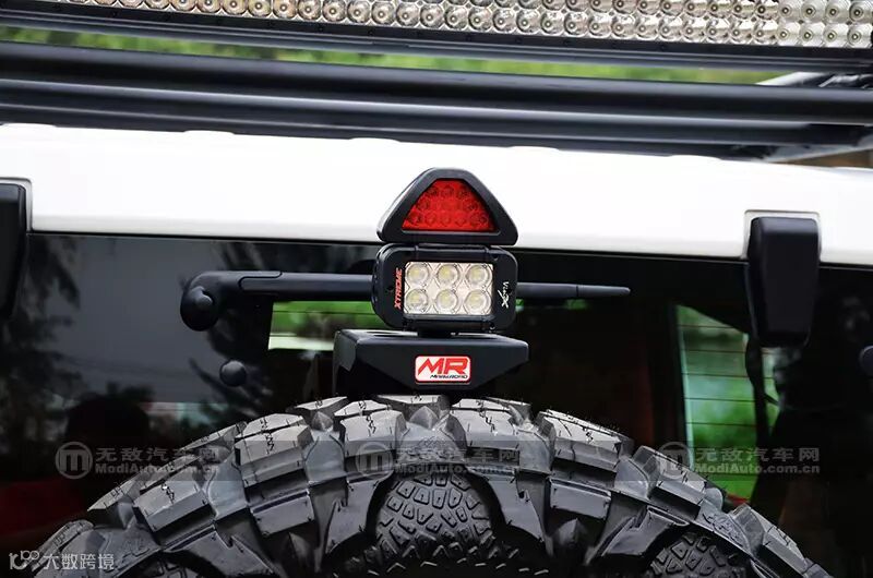 图:依旧是MR出品的大黄蜂短款越野后杠,作用自然还是防护。高位刹车灯和备胎架也被替换成同品牌的产品。