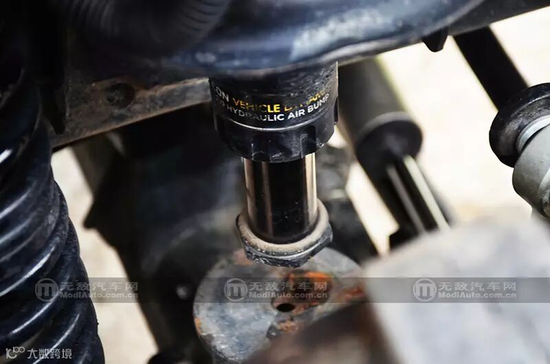 图:FOX可调转向减震器,除了行程超级长(高度自然是增加了很多)还可以随意调节倾角束角,为穿越各种路面做准备。