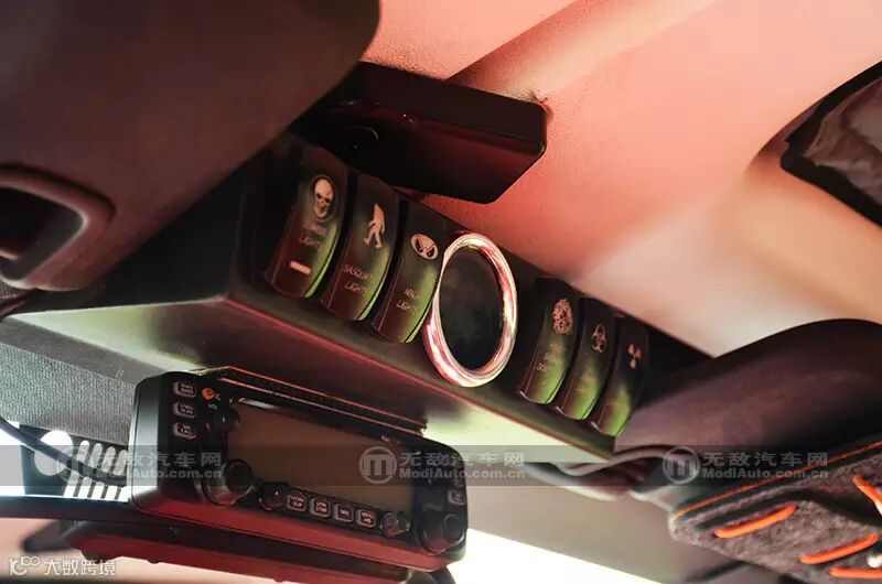 图:各种控制键一应俱全,看得我是云里雾里,总之不是控制差速锁就是控制避震器。小小按钮瞬间能够改变车辆的通过能力,好不痛快。