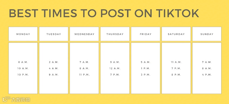 在 TikTok 上发帖的最佳时间每天都有所不同。以下是每日最佳时间: