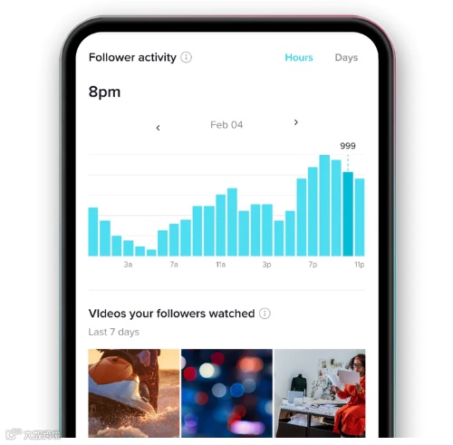 TikTok 的分析仪表板不仅显示一般用户何时活跃,还显示您自己的关注者何时最常在线。当您需要到达多个时区时,这可以帮助您确定适合您的品牌的最佳发布时间表。