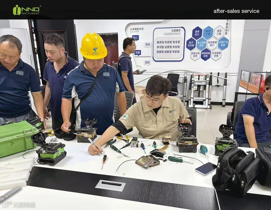 针对这些不同状况,我们的工程师除了为每台熔接机做基础的清洁维护保养之外,还会根据每台的设备的具体情况,进行针对性的维修,包括从放电强度精准校正、推进马校正以及系统软件升级优化等等,确保装维人员拿回去的每一台设备都能正常高效运行。