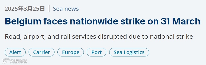 据比利时晚报最新报道,3月31日比利时将发生全国性罢工,以抗议联邦政府的养老金改革计划,预计铁路、公路和航空运输将受影响。货代巨头德迅(Kuehne+Nagel)也在官网发布预警。