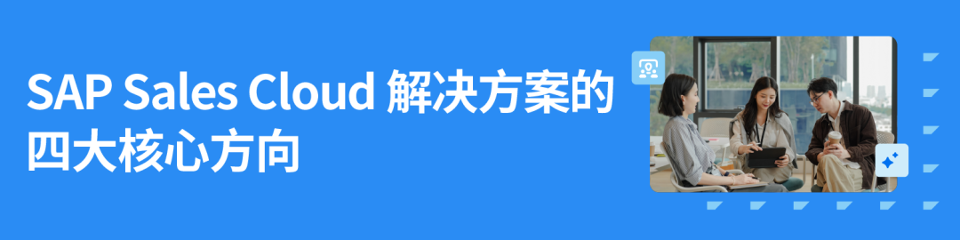 客户期望和商业节奏的重大转变不仅带来了颠覆性的影响,也开创了新的业务机会,销售部门可以利用切实可行的客户洞察和互联数据来克服这些挑战,赢得更多订单。SAP Sales Cloud [销售云] 解决方案正好能够赋能企业打造智能的引导式销售体验,消除猜测,帮助销售人员更快速地赢得更多订单。作为一款移动优先的云原生解决方案,它可以帮助企业简化和自动化关键销售流程,同时优化用户体验。该解决方案内置智能和生成式 AI 技术,可以提供宝贵的洞察和建议,轻松实现智能销售互动,帮助销售部门培养品牌拥护者和增加营收。