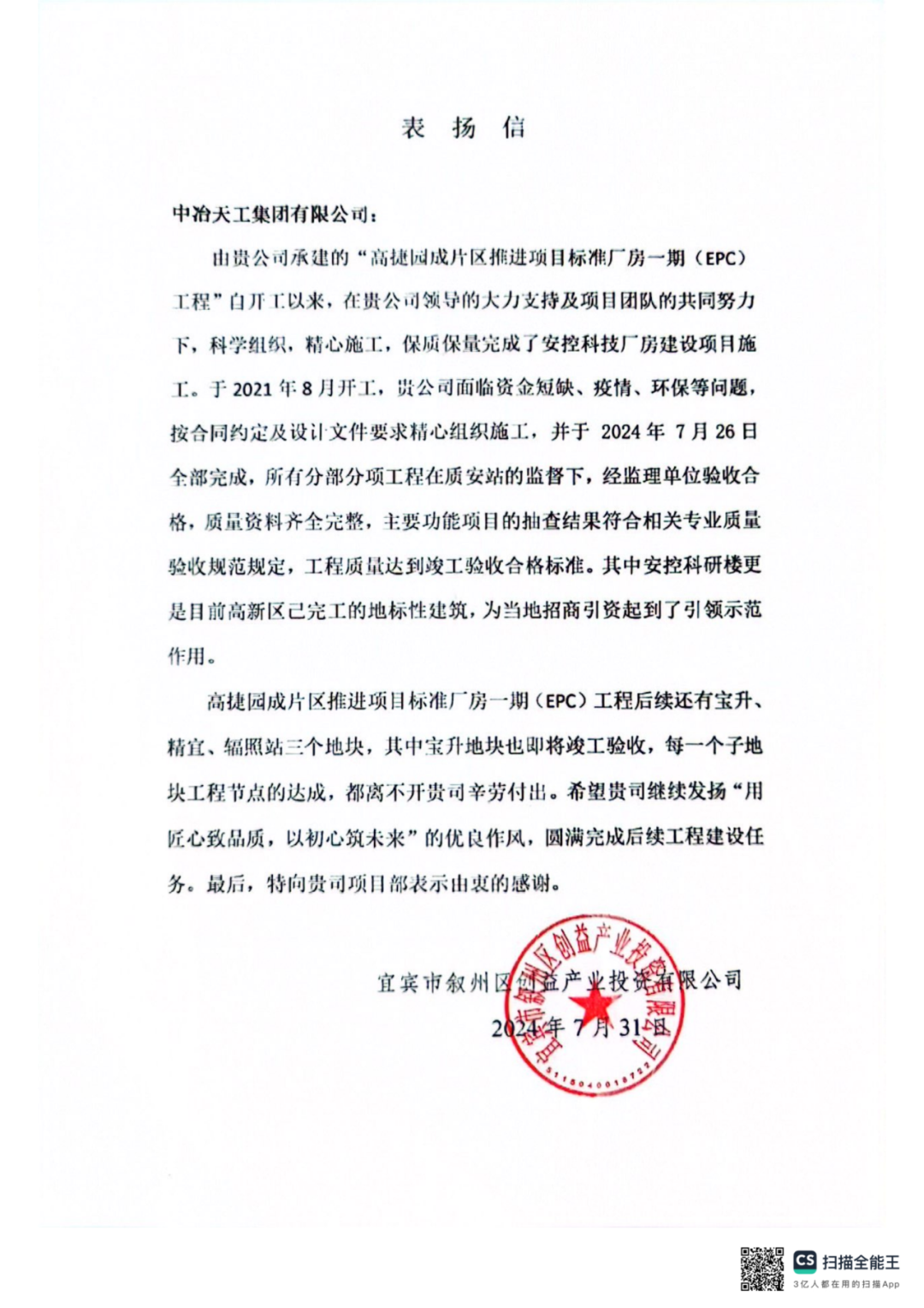 彰显了中冶天工对质量的执着追求