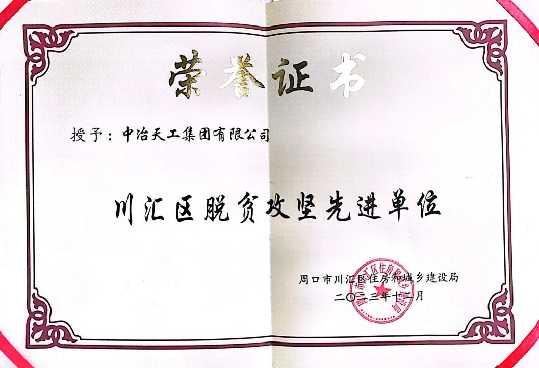 项目部积极践行央企社会责任,把还迁工程作为政治任务推进,获得周口市川汇区住建局颁发的脱贫攻坚荣誉称号