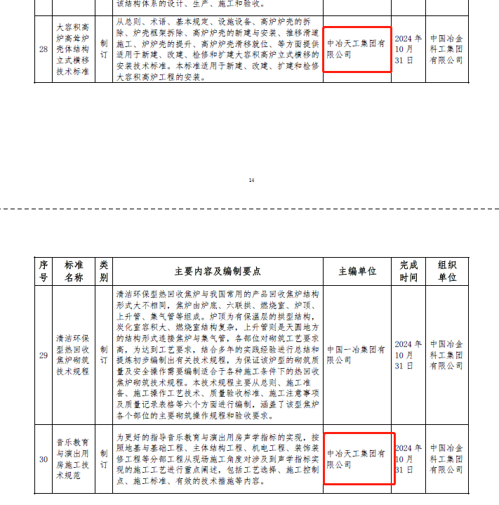 这一年,中冶天工发挥在信息化管控、音乐学院建筑、高炉大修等方面的技术优势、管理优势,成功申报中国建筑业协会团体标准2项,立项成功数量占中冶集团立项成功数量的1/3;成功申报中冶集团企业标准2项,在施工类子企业中立项成功数量排名第一。