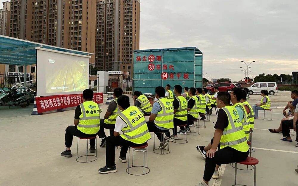 中冶天工南阳项目部组织全体员工露天观看《大国钢铁》
