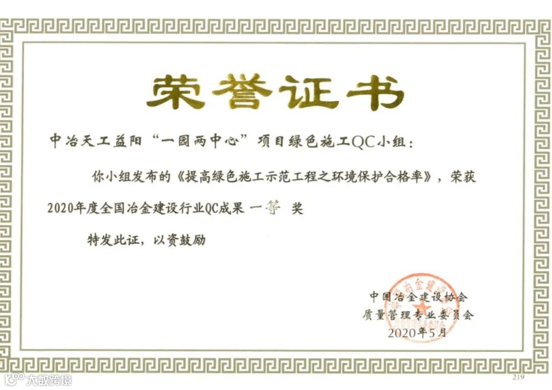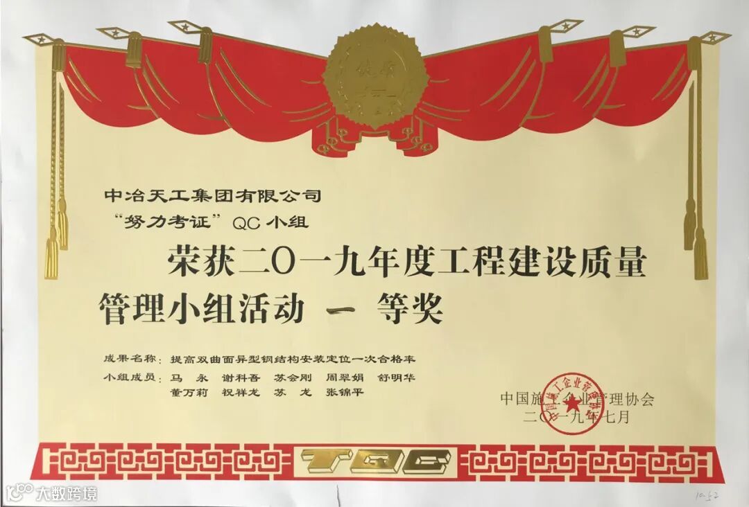 千淘万漉虽辛苦,吹尽黄沙始到金。2020年10月,项目通过中国施工企业协会绿色示范工程验收,达到绿色建造施工三星标准。截止目前,项目共获得QC成果奖15项,申请专利8项,获得省部级工法2项,获得第十四届第二批中国钢结构金奖、天津市建筑业BIM一等奖、湖南省BIM技术应用大赛特等奖、中冶集团BIM技术应用大赛一等奖。荣获“湖南省2019年度质量标准化优良工地”“湖南省2019年度安全标准化优良工地”“湖南省2020年度质量标准化优良工地”“湖南省2020年度安全标准化优良工地”。