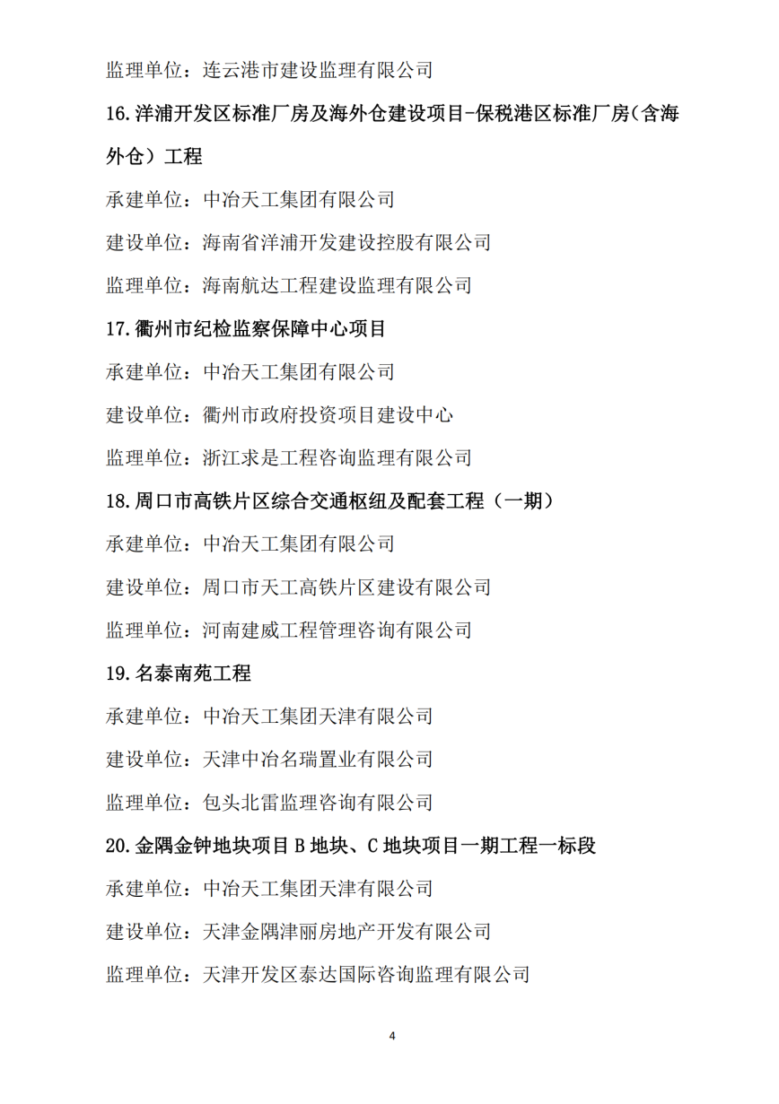 一致对中冶天工项目管理建设成果